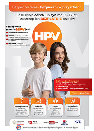 Państwowy Inspektor Sanitarny w Nowym Sączu informuje, że 1 czerwca 2023r. Polska dołączyła do krajów, które wprowadziła bezpłatne szczepienia przeciw HPV. W naszym kraju szczepienia te będą bezpłatne dla 12 i 13 latków.