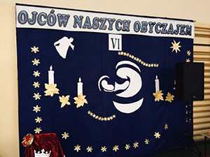 W tym roku odbyła się już VI edycja gminnego konkursu "Ojców naszych obyczajem", którego organizatorami byli p. wójt Stanisław Kiełbasa oraz Szkoła Podstawowa im. św. Jadwigi Królowej we Frycowej. Głównym celem corocznego spotkania pozostaje niezmiennie troska o podtrzymywanie i kultywowanie regionalnych tradycji oraz obyczajów związanych ze Świętami Bożego Narodzenia. Reprezentacje wszystkich szkół z terenu gminy Nawojowa rywalizowały ze sobą w pięciu konkurencjach: najpiękniejszy stroik / kartki świąteczne / choinka, wiedza o tradycjach i zwyczajach bożonarodzeniowych, najładniejsze wykonanie kolędy lub pastorałki. Swoją obecnością spotkanie uświetniły Panie ze Stowarzyszenia "Tradycja i Przyszłość", które od początku wspierają inicjatywę konkursu i przygotowują dla wszystkich obecnych tradycyjne potrawy świąteczne.Bardzo dziękujemy sponsorom, którzy ufundowali cenne nagrody.